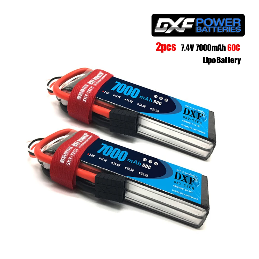 HIGH QUALITY 2PCS DXF 2S 3S 4S 7.4V 11.1V 14.8V 7000mAh 60C Lipo Battery RC Parts Hard Case Deans/T For TRX 4 Bu